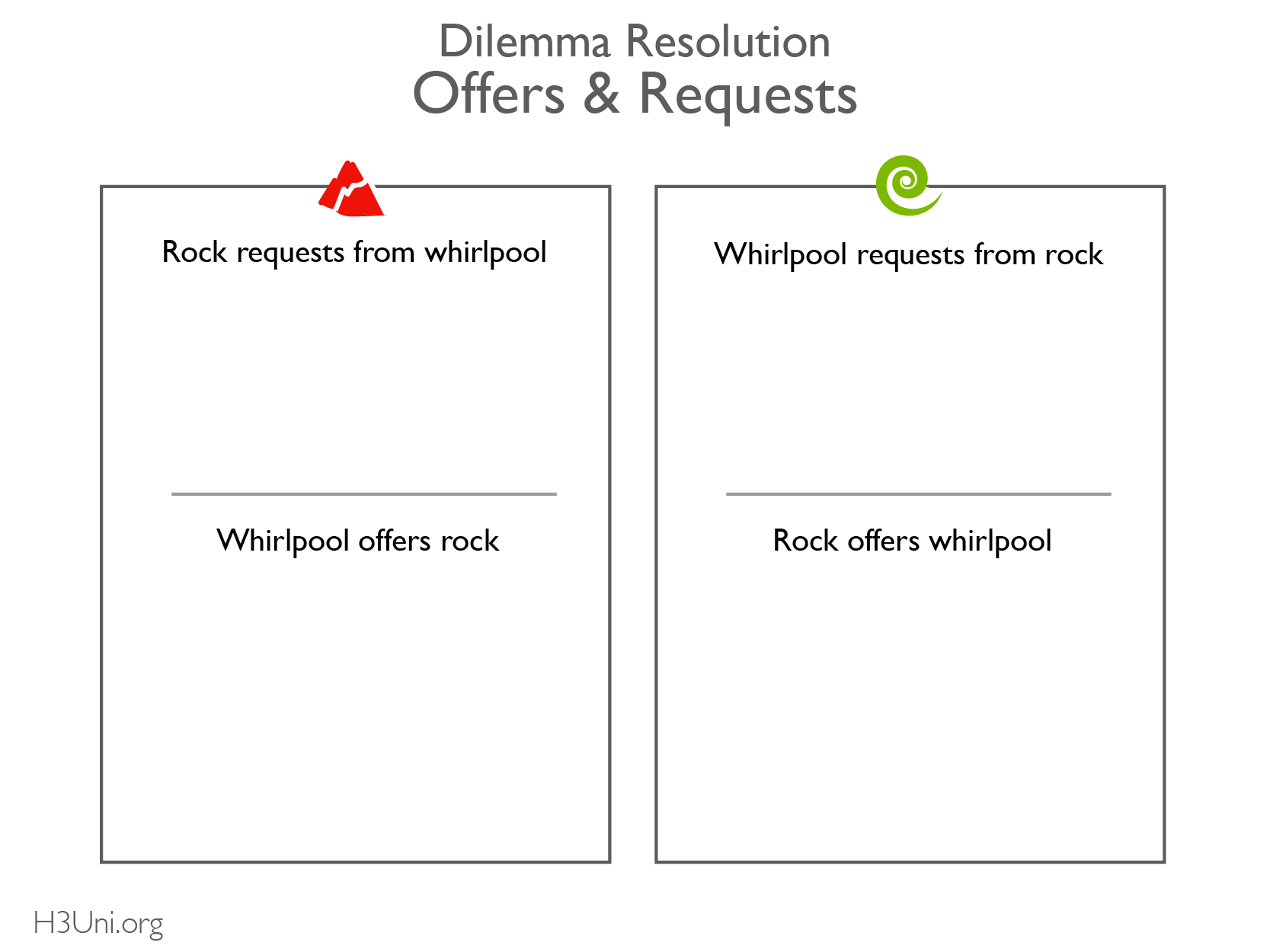 Note: a good resolution idea will incorporate both values evenly and yet also go beyond them to something new.