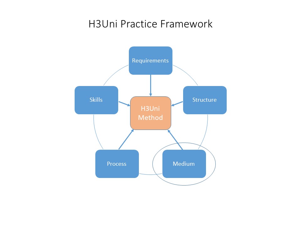 As a practitioner you need to choose an appropriate method to match the identified requirement. An H3Uni Method – such as Three Horizons or Dilemma Navigation – combines a way to structure group thinking with a process for engaging the group with the structure through visually facilitated steps. Methods introduce an effective discipline for thinking, interacting and extracting value from information.