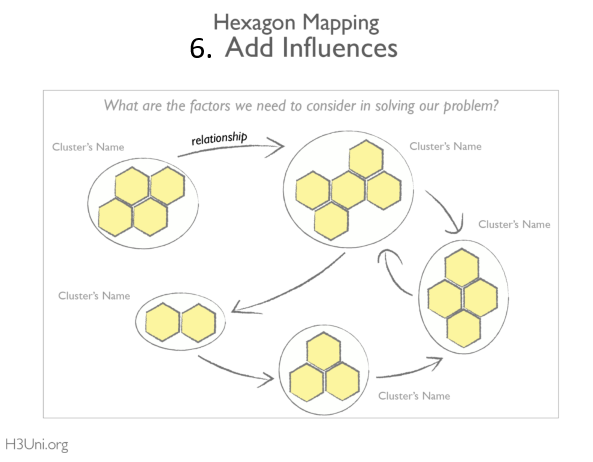 The Hexagon Mapping method is both a self-contained process for exploring any complex issue, but also provides steps that can be used in any other H3Uni method for clustering the output of one step as input to the next.