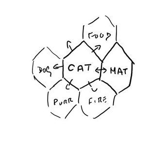 The power of hexagon thinking rests on the nature of the hexagon geometry. You can take a hexagon and add one to each side, connecting the one in the middle to six others. This immediately disrupts our normal linear thinking, and allows us to present a set of ideas in a way that helps our minds see them in relationship. Our verbal language, for example “the cat sat on the mat”, freezes the relationship between the cat and the mat to just one of several possibilities. Place the ‘cat’ in a hexagon and it now has potentially six relationships of which ‘mat’ is only one.