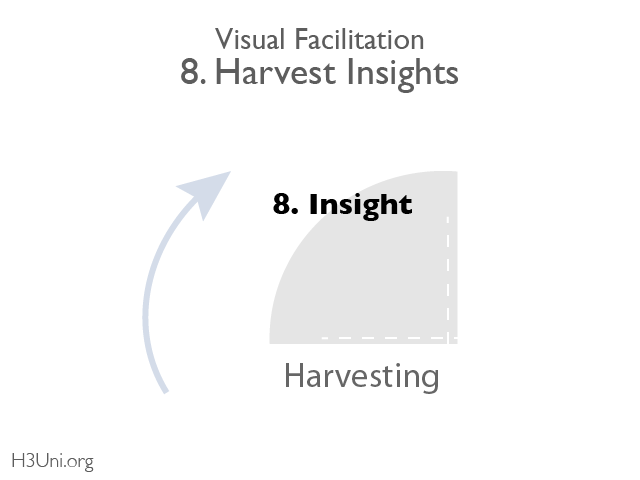 Idonic visual facilitation requires a combination of skills that have to be developed and used together. We all have these skills in some form or another but we need to practice using them in an integrated way. The deeper the skills and their integration the more effective the facilitator. The following system is a Skill Circle for visual facilitation with idons. Each of the eight skills is described below with some hints and tips about how to go about it. The steps are presented here as they would be if you were doing a complete method like Hexagon Mapping, but bear in mind that this process underpins the use of idons in any H3Uni Method, where the overall structure will guide when to use this. Steps 1-4 are completely general to the use of idons in any method. Steps 5-8 are particular to each method.