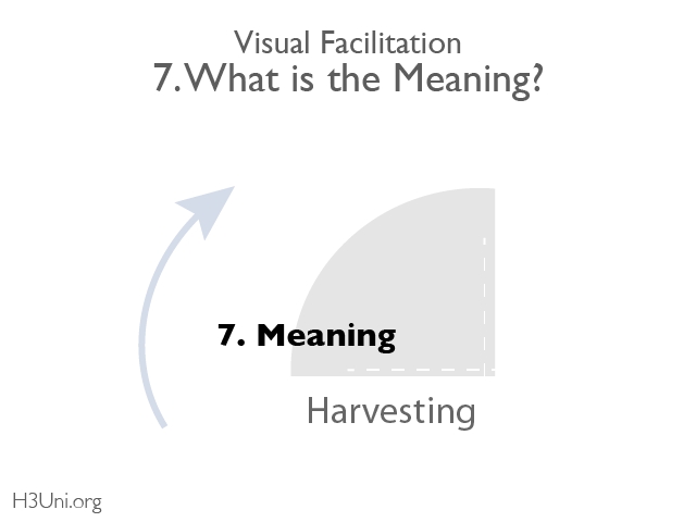 Facilitating co-creation requires the facilitator to help the group be clear about the distinction between analysis and synthesis. This stage is not about picking the situation apart but about looking for new patterns of connection which evoke new meaning. The new meaning, in turn, evokes new possibilities for action – for example, solution approaches to the the original problem which had not been previously generated, recognised or considered. Analysis tends to categorisation; synthesis gravitates to patterns of connection. Gestalt (the recognition of meaningful pattern) operates in thought as well as in perception.