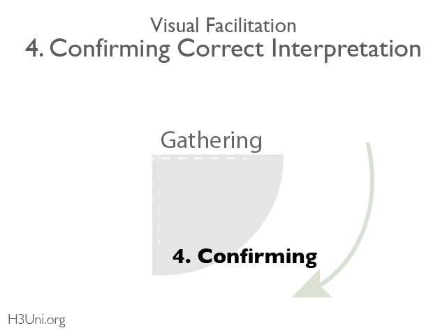 It is good to use the visual record that has been created to review all the contributions briefly (reading them out and pointing) as a recapitulation for the group